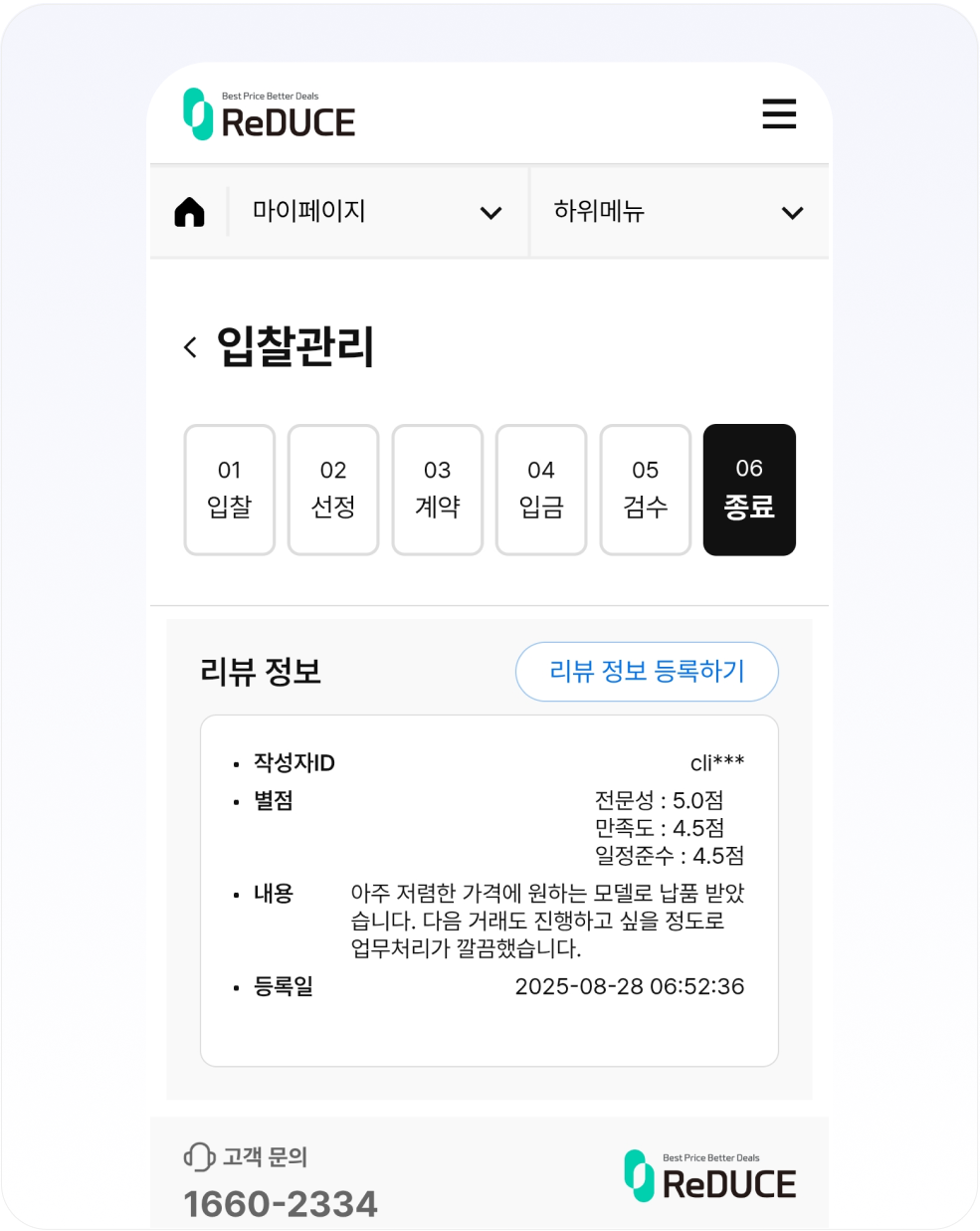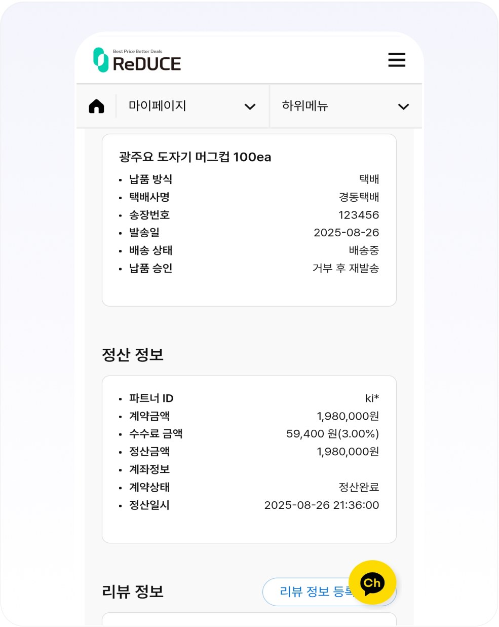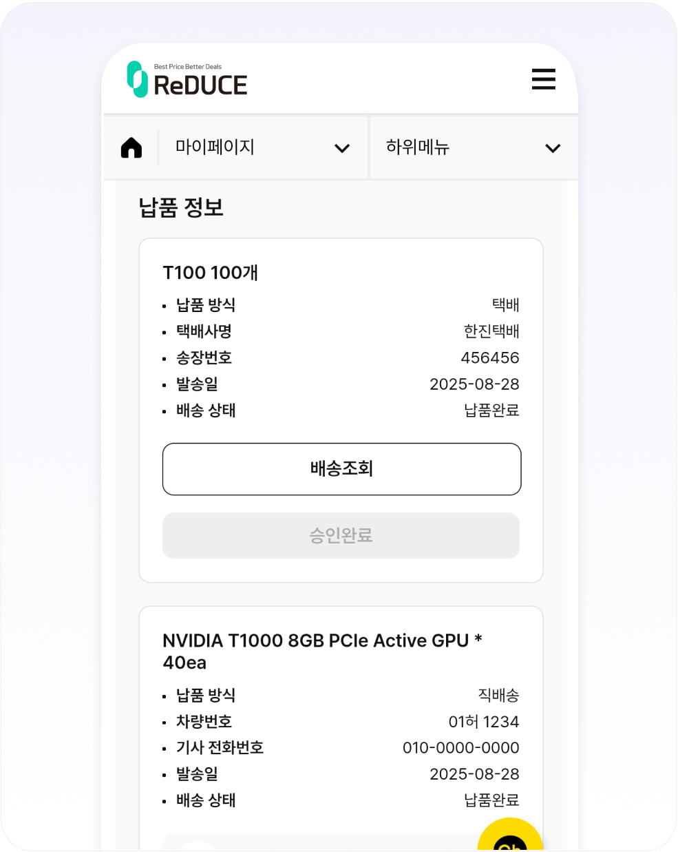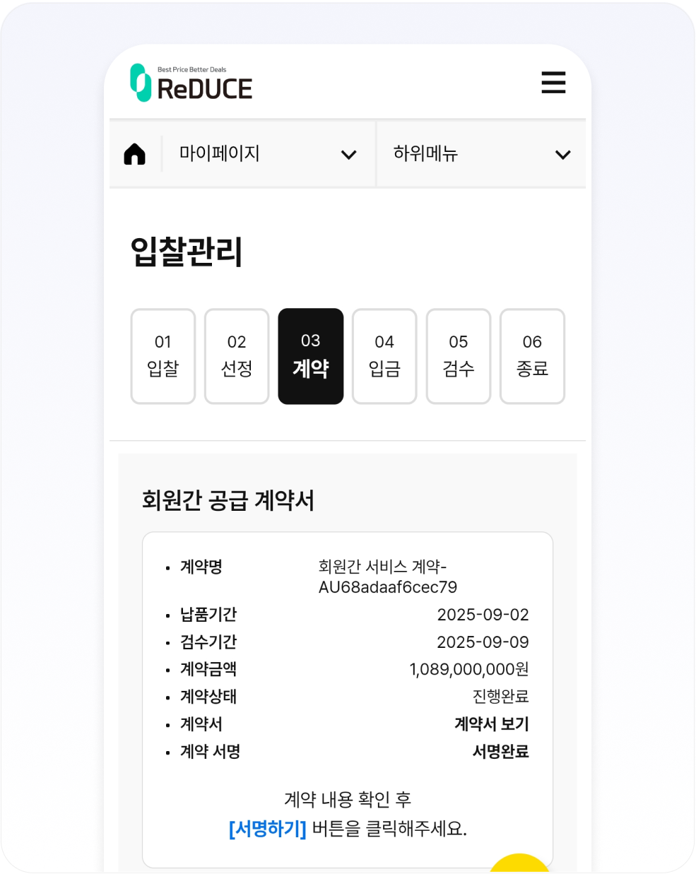 모든 거래는 리듀스가 관리 및 중재하여 보다 안전하고 효율적인 B2B 거래가 이뤄질 수 있도록 지원합니다.